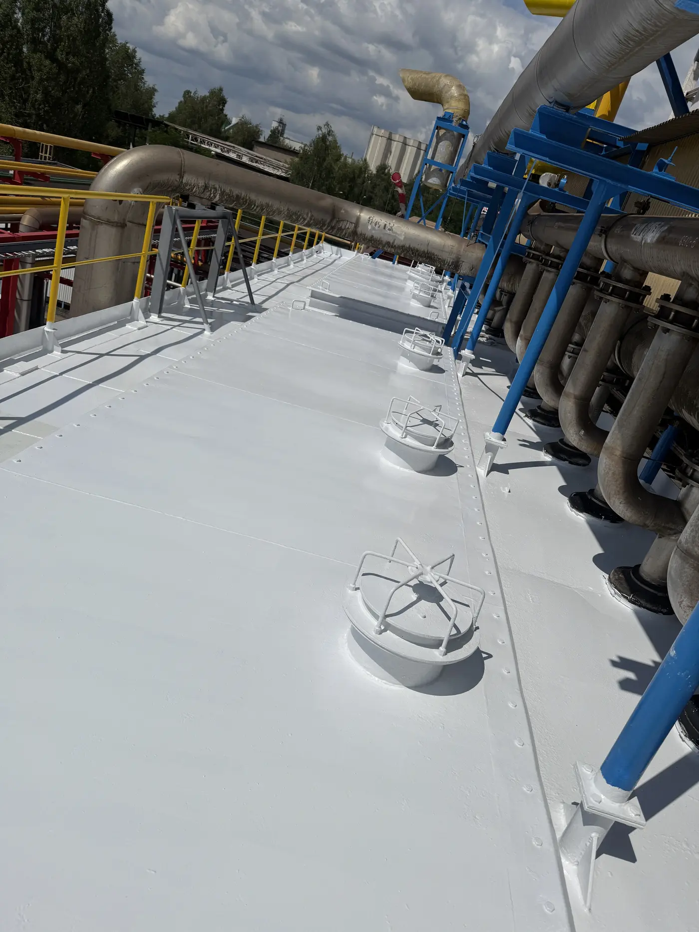 Zabezpieczenia stosujemy wszędzie tam, gdzie występuje stal: hale przemysłowe, magazyny, konstrukcje nośne, zbiorniki, rurociągi czy elementy dachowe. Metoda sprawdza się również przy mniejszych pracach, np. na balustradach, masztach czy kominach.